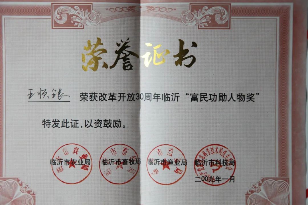 王顺银同志多次荣获省、市区“劳动模范”、“山东省优秀党务工作者”、“山东省优秀社区工作者”、“模范党支部书记”、 “山东省十大孝星”、“优秀企业家”、“先进工作者”、“富民兴鲁劳动奖章”、“山东省劳动模范”、“临沂商城十大创新人物”、“兰山区改革开放30年创业创新人物”、“临沂市创业功臣”等荣誉称号。从1998年起连续被选为临沂市第十五、十六、十七、十八、十九、二十届人大代表。