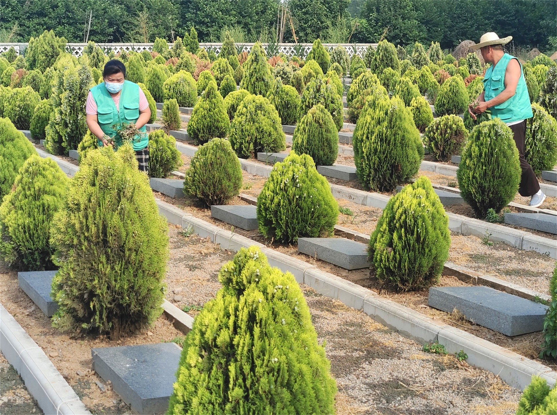 6月10日,郯城县马头镇15名公墓管理员正在农村公益性公墓清除杂草,8处农村公益性公墓实现了政府买单,专人守护管理服务的新模式。