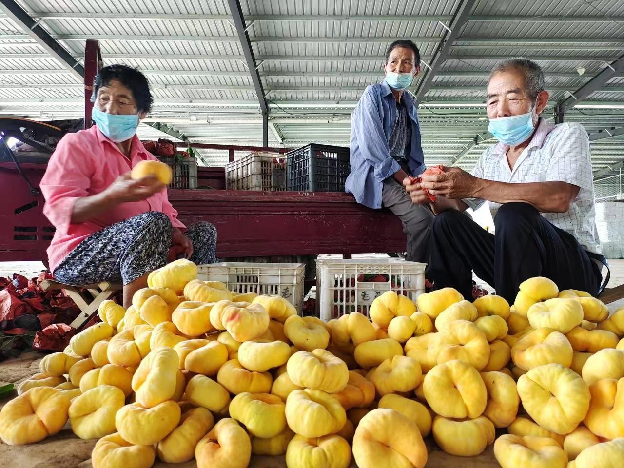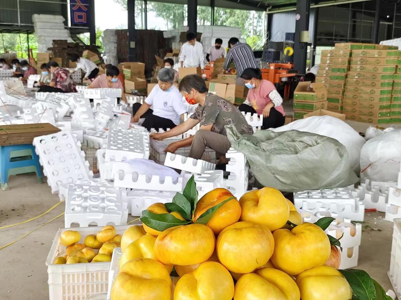 这边直播经济红红火火,那边线下销售也是风生水起。在岱崮镇富民果品专业合作社,社员们正忙着将果农送来的桃子进行分拣、入库。这些蜜桃打冷后将通过冷链车运送到省内外各大果品农贸市场。