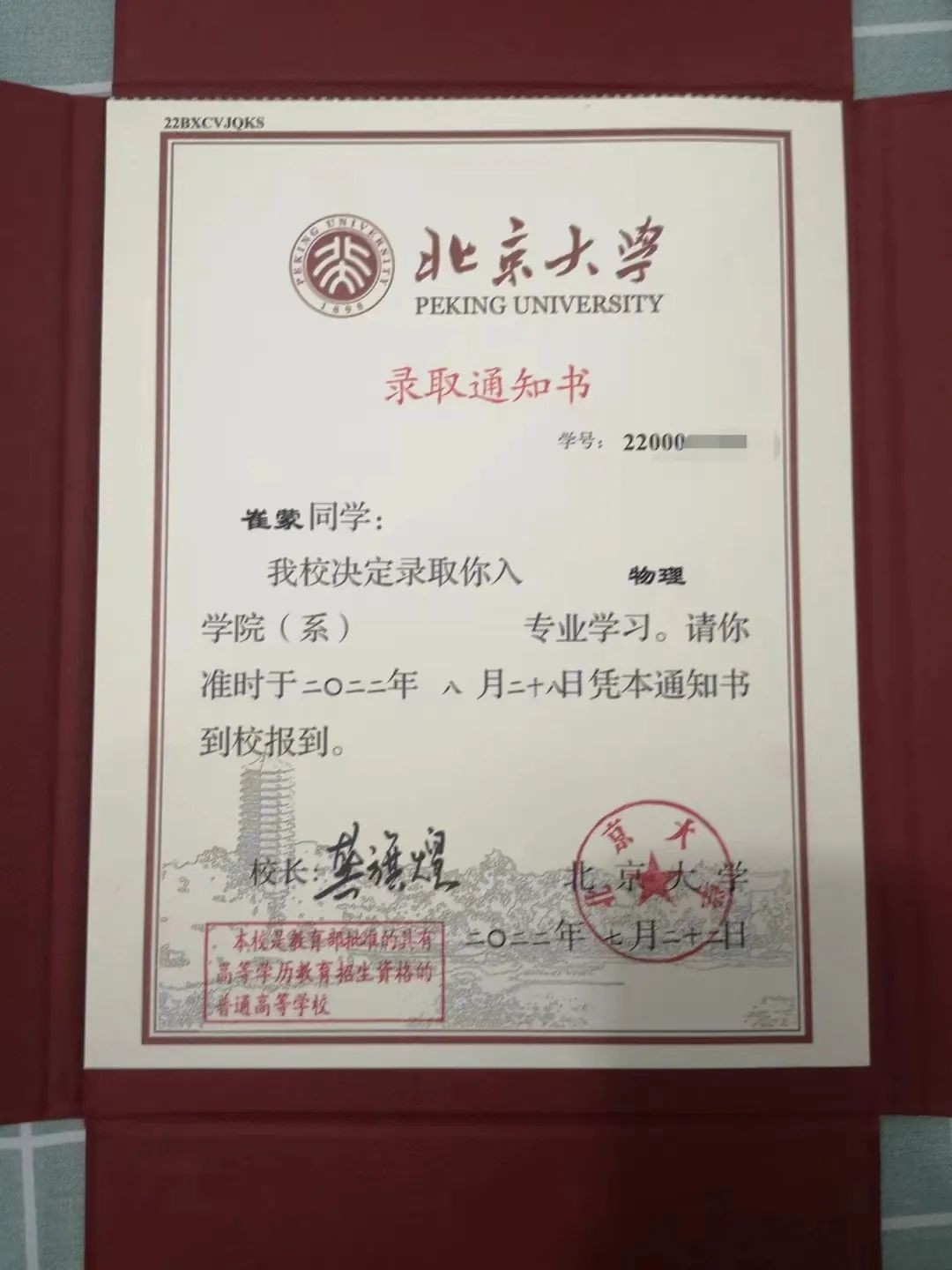 崔蒙同学生活中勤奋刻苦,用奋斗搭建阶梯,以汗水浇灌青春,努力攀登直达北京大学的顶峰,不负家长、老师厚望,不负芳华不负心,不负青春不负梦。为家乡取得了荣誉。