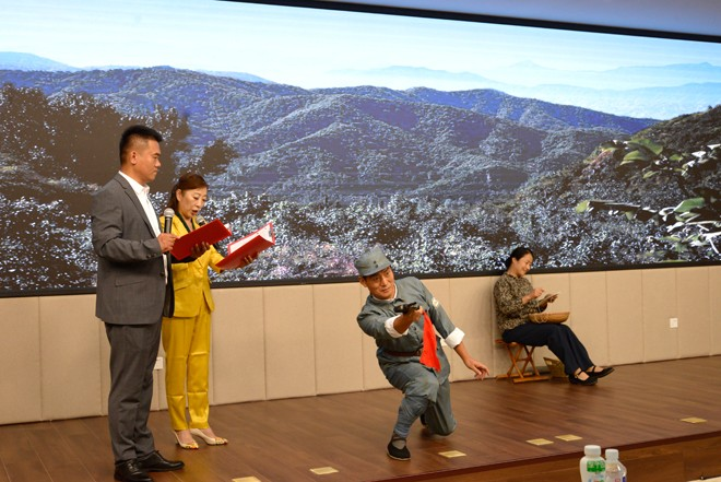 歌曲、朗诵、情景剧,11项精彩的节目表演在秋日里送上了一场多姿多彩的视听盛宴。一曲《那一年》,唱出了《沂蒙晚报》从呱呱坠地的婴儿到成长为一位临沂人老朋友的风雨历程;一首《沂蒙晚报之歌》,诵出了对《沂蒙晚报》20年始终坚守舆论阵地,传递正确声音的赞美之情。《七一赞歌》再现了我们党“百年恰是风华正茂”的磅礴气势,也让我们感受到晚报四季朗诵艺术诗会的风采与魅力。一首《英雄赞歌》让我们不能忘记,英雄的临沂,是从红色中一路走来。石增春、赵春燕朗诵的《为有牺牲多壮志》, 一个“敢”字,将共和国的多少风云一笔带过。而在这豪迈背后,更有追忆与思念,饱含了这位伟人为了新中国所作出的巨大牺牲。除此之外,其他的节目也用精彩的表演,为在场的嘉宾展现了令人动容的红色革命精神,现场掌声雷动。