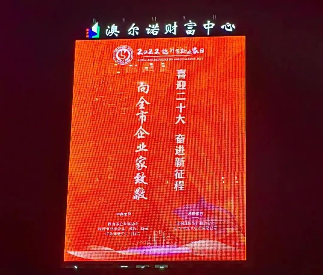 9 月 26 日,为庆祝 2022 年度临沂市企业家日,由临沂市企业家协会、市中小企业(维权)协会、市化工行业协会主办,中国建设银行临沂分行、山东博立供应链有限公司承办的“喜迎二十大 奋进新征程”主题系列宣传活动拉开序幕,本次活动在临沂蓝海国际大饭店(沂河店)、市文化中心、中国建设银行临沂分行等显著位置,通过彩旗和巨型喷绘等方式进行宣传;3000 辆的士顶灯滚动字幕活跃在临沂市大街小巷;临沂金鼎、奥尔诺巨屏宣传画面在临沂城市夜空绚丽闪耀,营造了尊重企业家、关爱企业家、支持企业家的浓厚氛围。