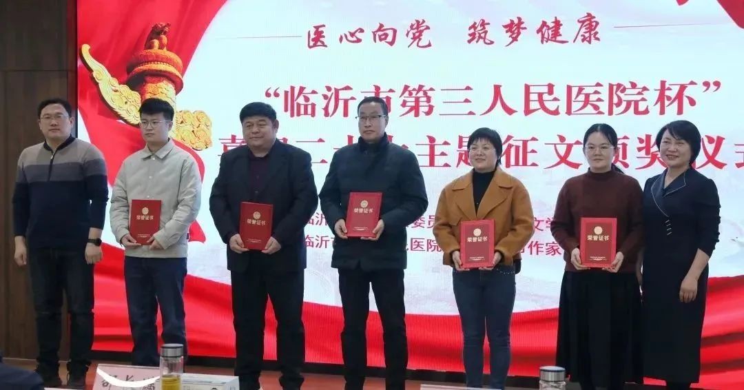 2月3日下午,由临沂市卫生健康委员会、临沂市文学艺术界联合会主办,临沂市第三人民医院、临沂市作家协会承办的“医心向党 筑梦健康”“临沂市第三人民医院杯”征文颁奖仪式在临沂市第三人民医院隆重举行。
