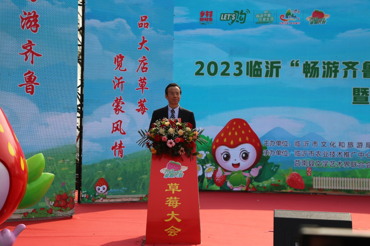 3月18日上午,2023临沂“畅游齐鲁·乐享生活”主题旅游年活动启动仪式暨临沂·大店草莓大会在莒南县大店镇拉开帷幕。临沂市委宣传部副部长王永凤,临沂市农发集团党委书记、董事长管佃如,临沂市农业农村局二级调研员刘强,临沂市文化和旅游局党组成员高弘清,中国草莓学会副理事长、青岛农业大学教授姜卓俊,临沂市农科院园艺作物研究部主任刘林,临沂市农技中心研究员管恩桦,山东省家庭农场协会常务副会长刘斌杰,莒南县委副书记、政法委书记程凯,莒南县委常委、宣传部部长张华莒南县人大常委会副主任、县总工会主席程守清,莒南县政府副县长朱礼珂,莒南县政协副主席、县科技局局长王明晓,大店镇党委书记陈立明,大店镇党委副书记、镇长李刚,各县区参赛选手、企业代表、协办企业及签约企业代表、各县区文化和旅游局、农业农村局负责同志及速豹新闻等新闻媒体记者参加。