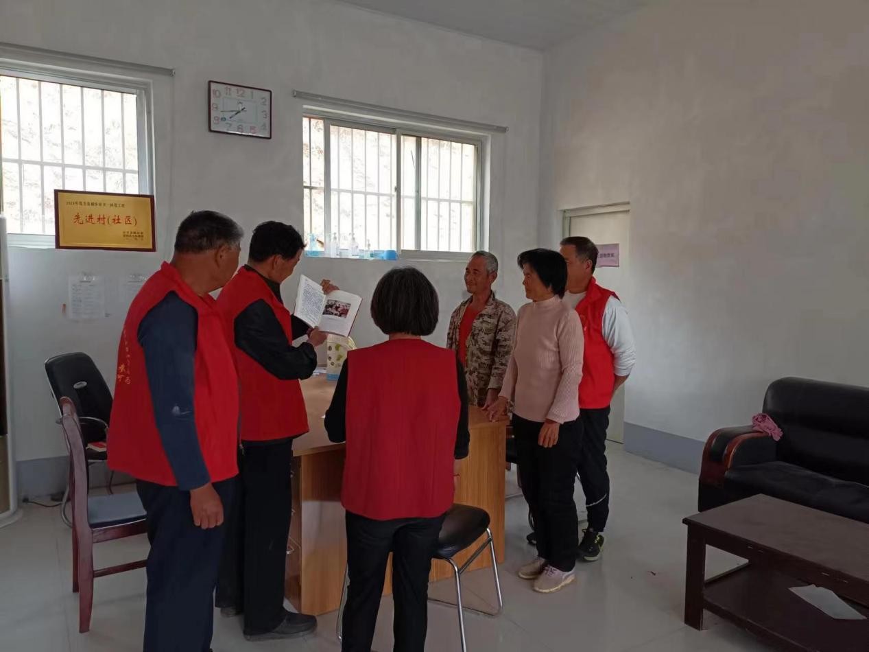 活动中,身穿红马甲的文明实践志愿者组成阅读小队结合村庄工作实际和自身生活体验畅谈,使广大村民群众补精神之钙、壮信念之骨。
