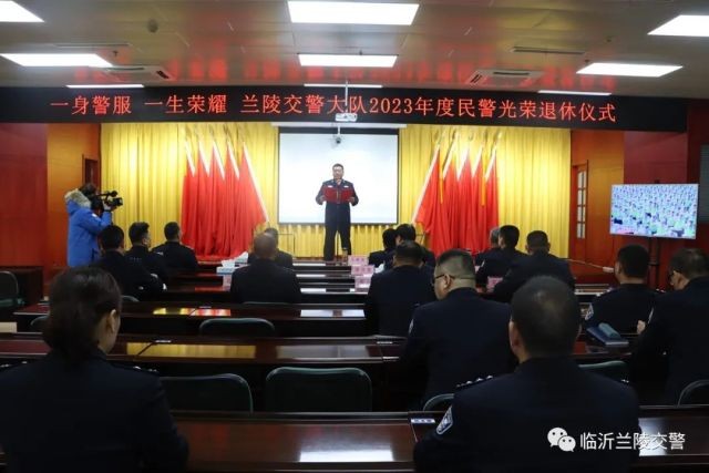 为切实增强退休及在职民辅警的职业荣誉感、自豪感和归属感,12月29日,兰陵交警大队为四位民警举行荣誉退休仪式,市公安局交通警察支队党委委员、副政委缪兴智出席仪式并讲话,大队领导班子成员、退休民警、部分民警辅警和家属代表参加仪式。