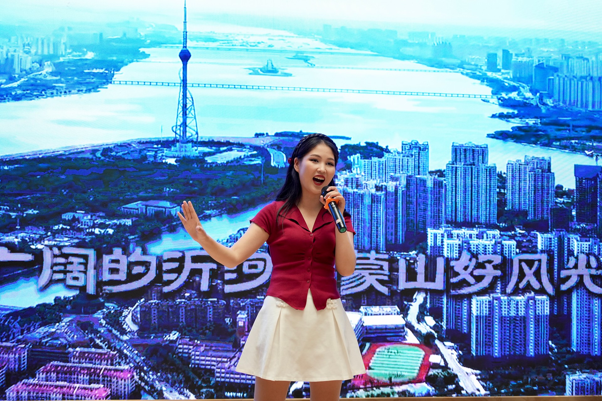 在现场,第一届推荐官“冰冰爱山东”——任冰冰进行了精彩演讲,用美妙的歌声分享担任城市推荐官积极传播网络文明、共同讲好临沂故事心得体会。