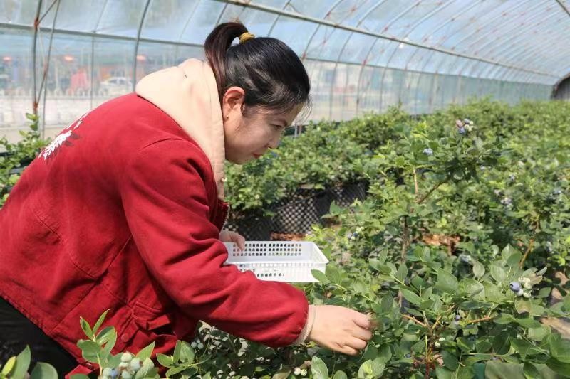 速豹新闻网 通讯员 王从金4月7日,游客在临沂市临沭县大兴镇聚辉种植专业合作采摘暖棚早熟品种优瑞卡蓝莓。据聚辉种植合作社负责人王绪峰