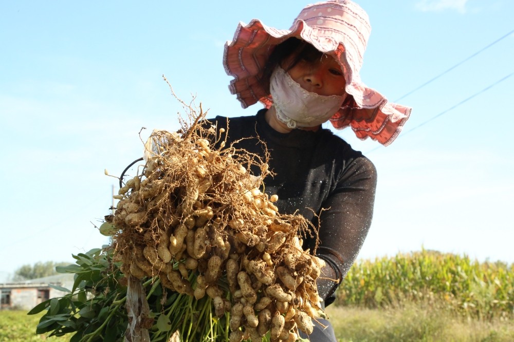 山东商报·速豹新闻网 通讯员王从金9月23日,农民丰收节这天,山东省临沭县大兴镇大兴村村民正在收获大麦茬花生。据了解,大麦茬花生比