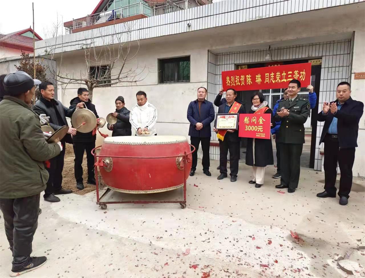 1月27日,郯城县马头镇房一村锣鼓喧天,鞭炮齐鸣,热烈祝贺陈琳荣立三等功的红色标语格外引入注目。郯城县人民武装部、双拥办和退役军人事