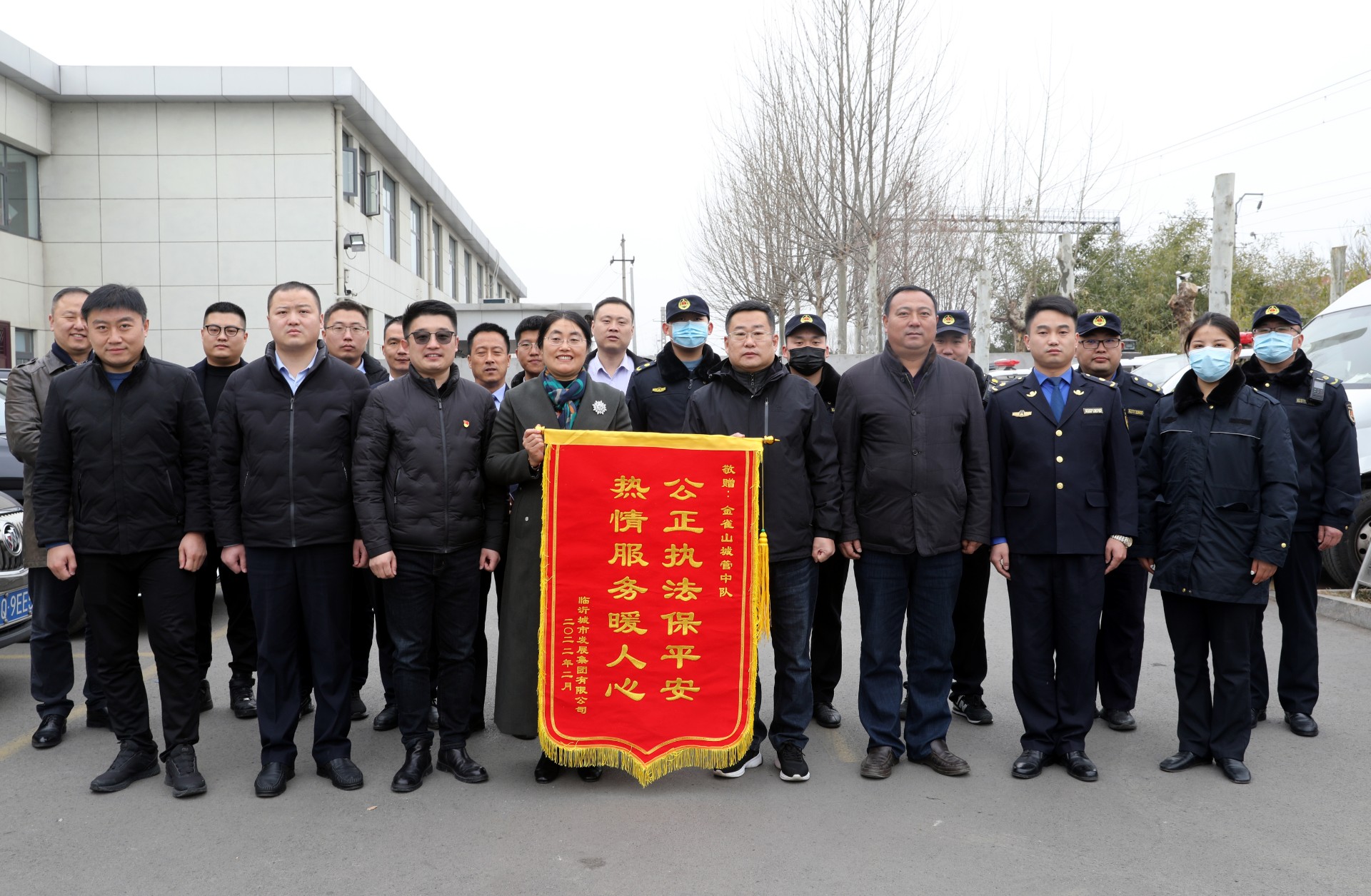 2月7日上午,临沂市城市发展集团有限公司相关负责人将一面写有热情服务暖人心、公正执法保平安的锦旗送至金雀山街道城管中队,感谢在沂州里