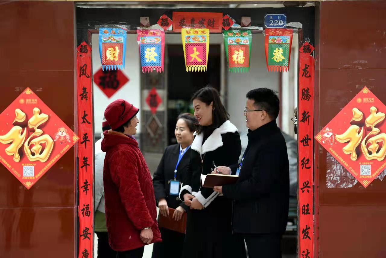 2022年2月9日,山东省临沂市郯城县纪委监委监督小组工作人员在马头镇梁村向群众了解种粮补贴发放情况。2022年2月9日,山东省临沂市郯城县纪
