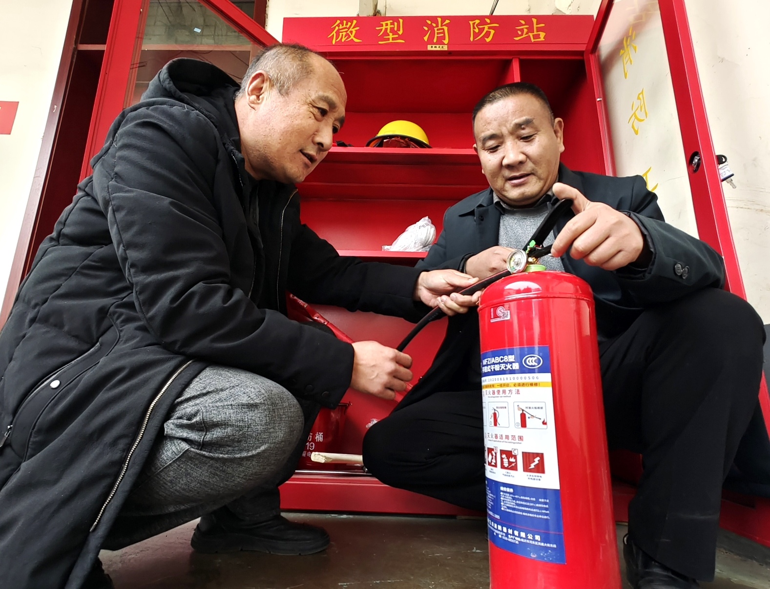 1月12日,在郯城县马头镇马西社区应急消防队员正在清点微型消防站存放的物资。至此,郯城146个微型消防站全部到位。所有应急消防物资装备齐