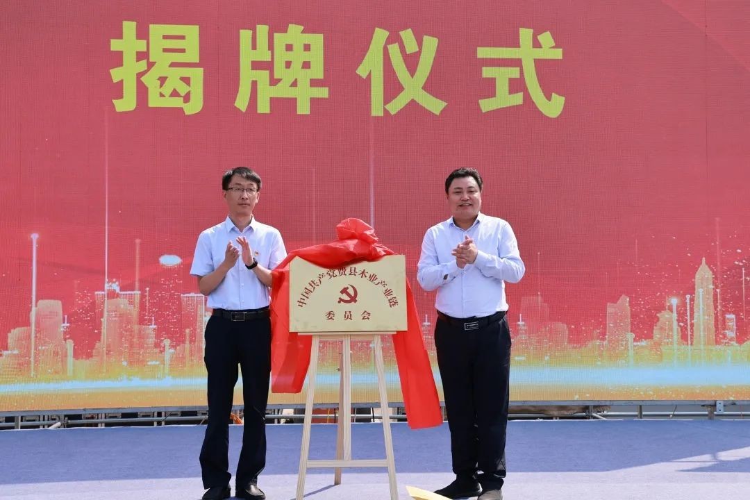 市委组织部副部长马其超、县委书记徐立峰共同为费县木业产业链党委揭牌。