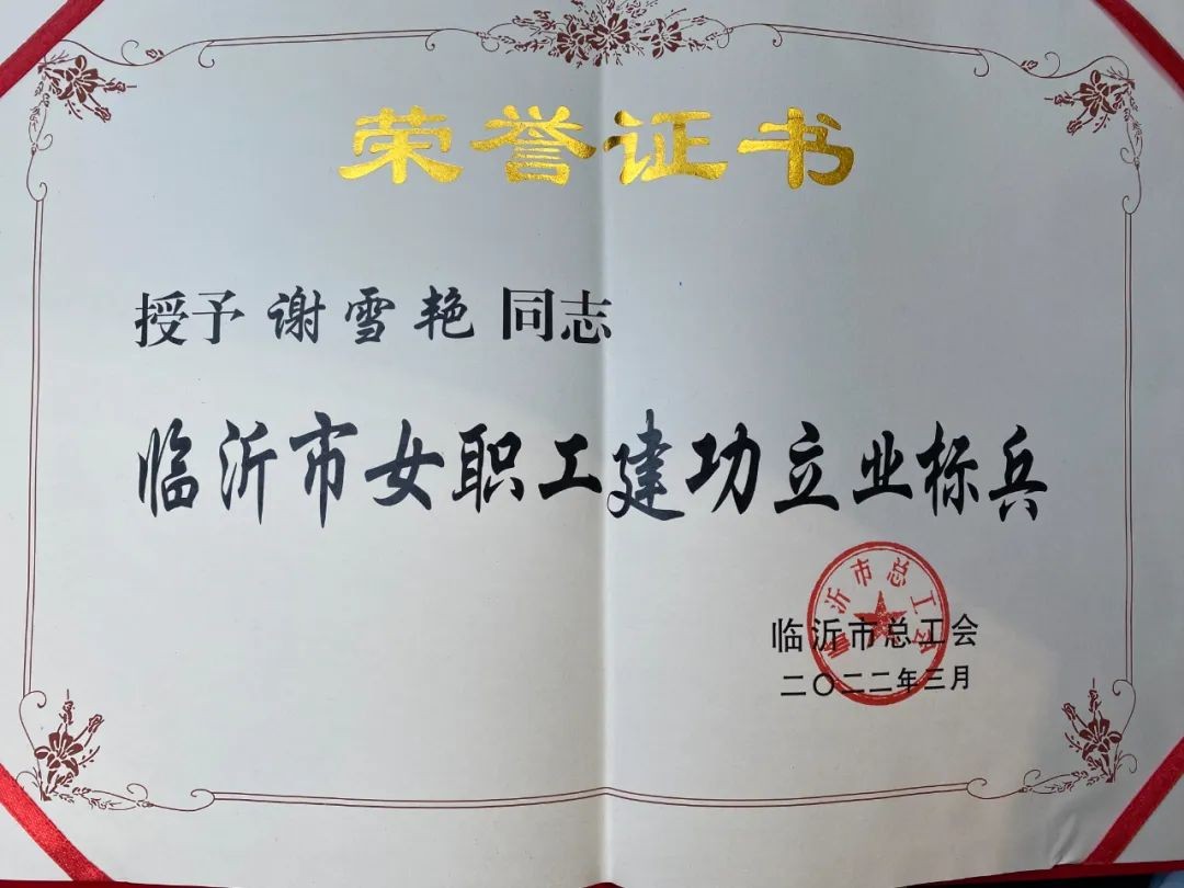 2022年,她被临沂市总工会授予“临沂市女职工建功立业标兵”。 同年,临沂市新的社会阶层人士联谊会妇女联合会成立,大会通过投票选举她为妇联副主席。山东省注册税务师协会还推荐谢雪艳与三位税务师同事走进山东台《周末说法》节目直播间,代表税务师行业与企业和公众交流,利用业务专长以及对国家税收政策的深入理解和精准把握,把在民营企业合规中的探索与实践以及实操案例进行分享,引导企业树立合规意识、降低企业税收风险。