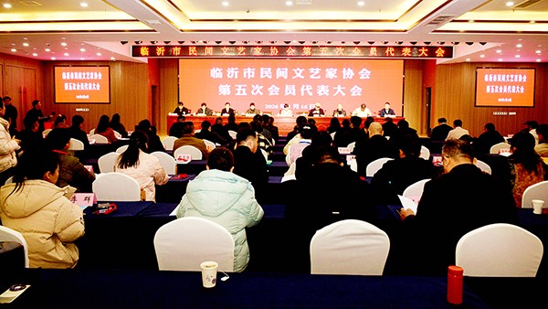 1月16日,临沂市民间文艺家协会第五次会员代表大会在市人才学术交流中心召开,胡后彬当选新一届民协主席。(记者 于大龙 张晓飞)